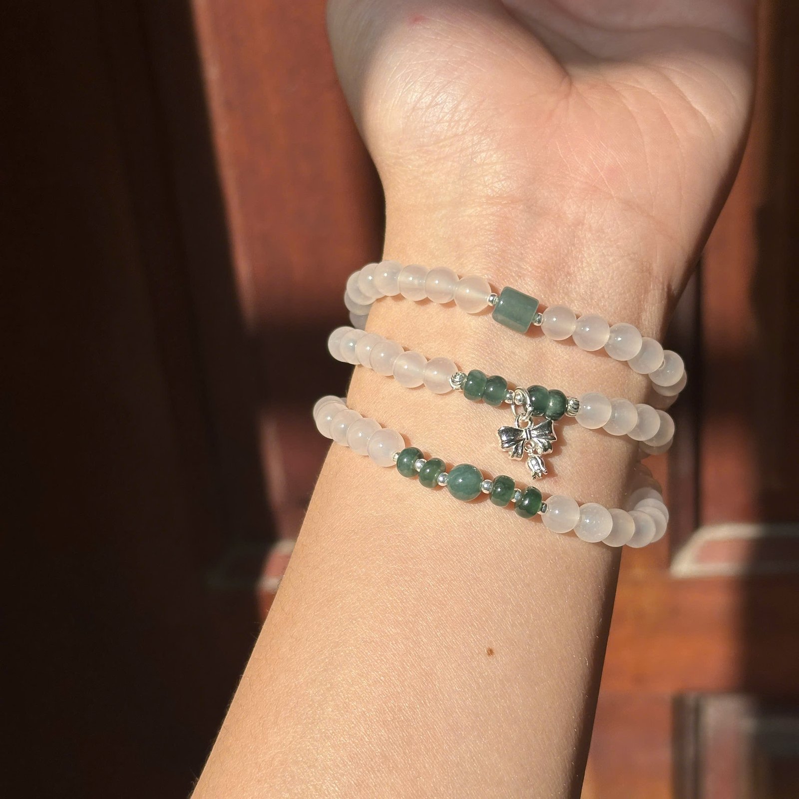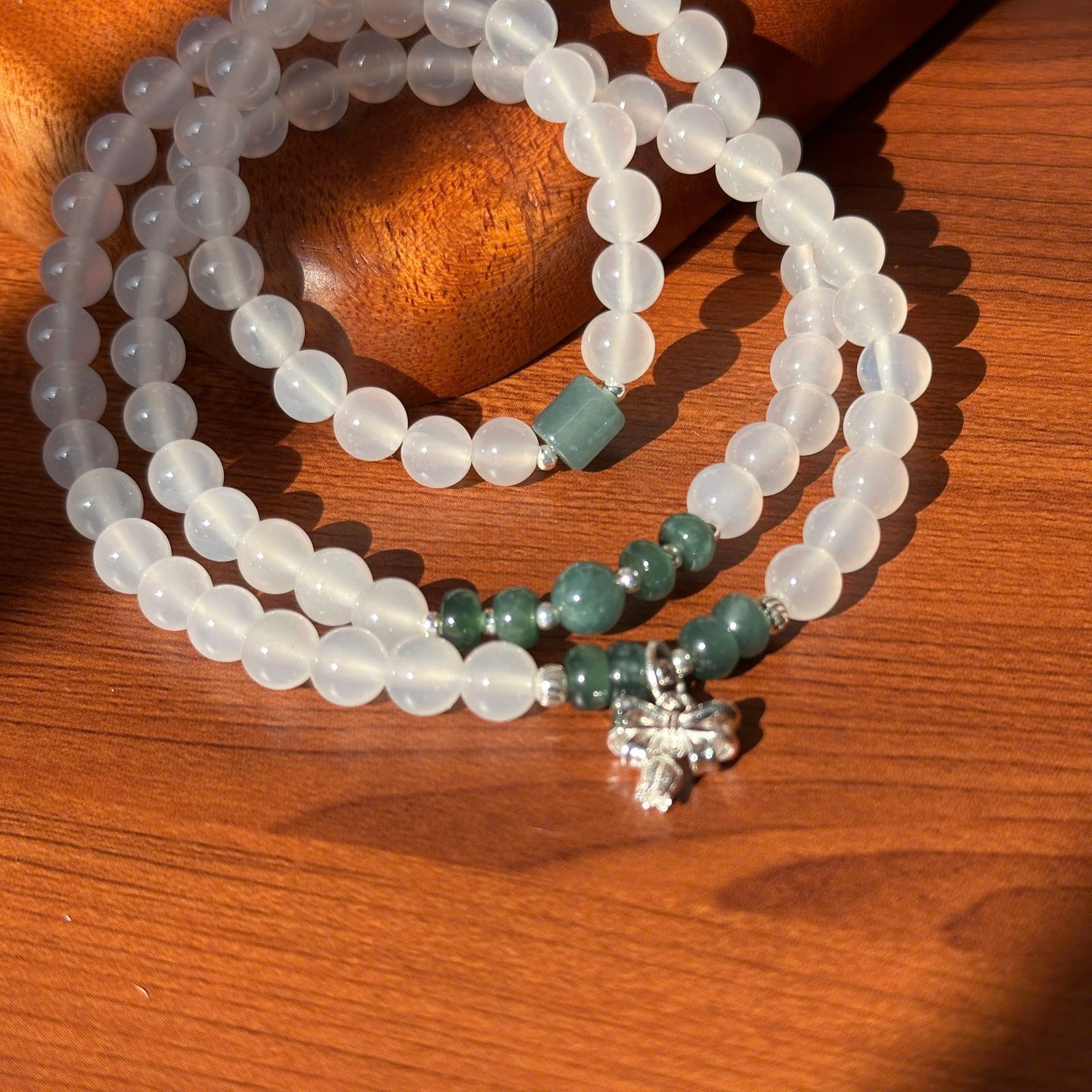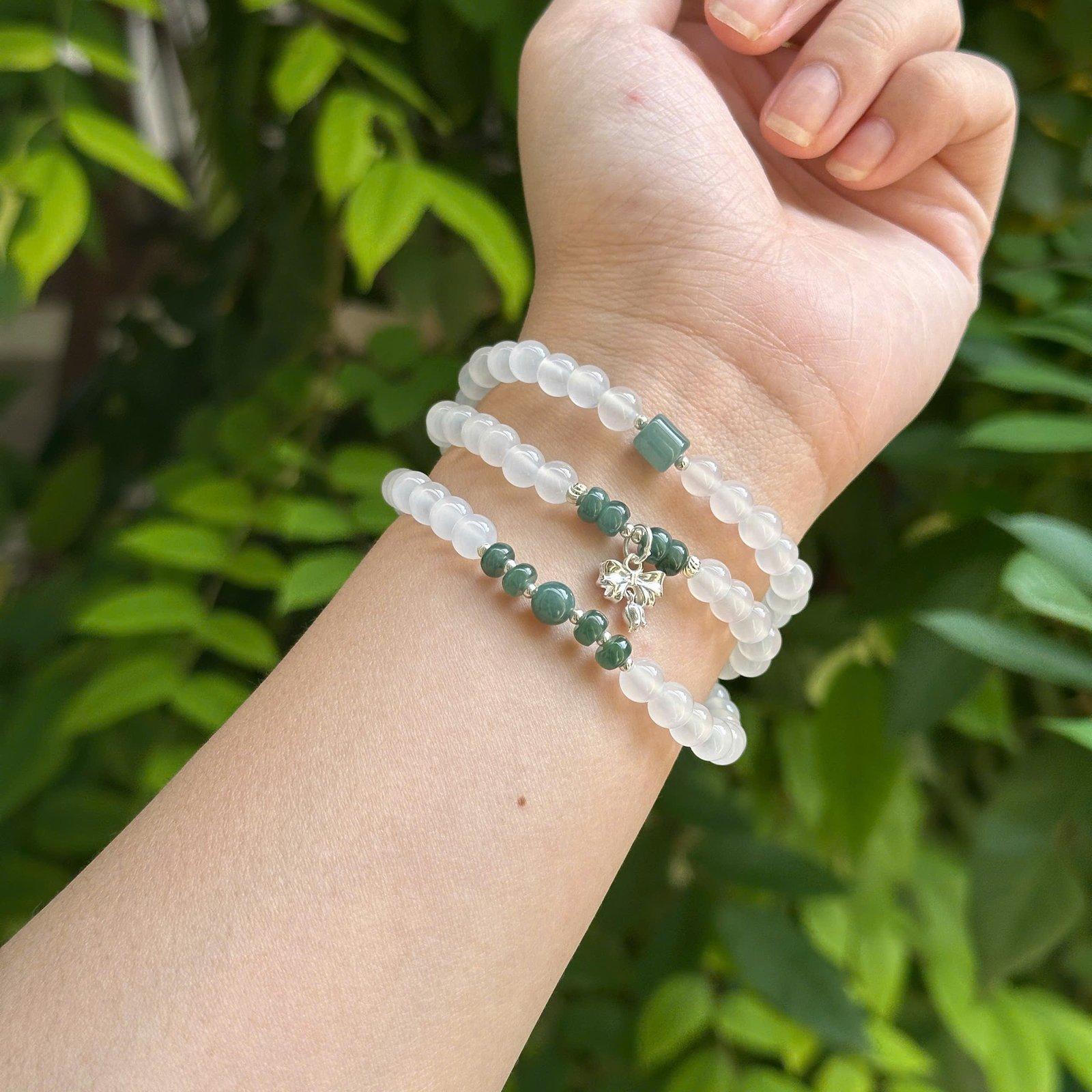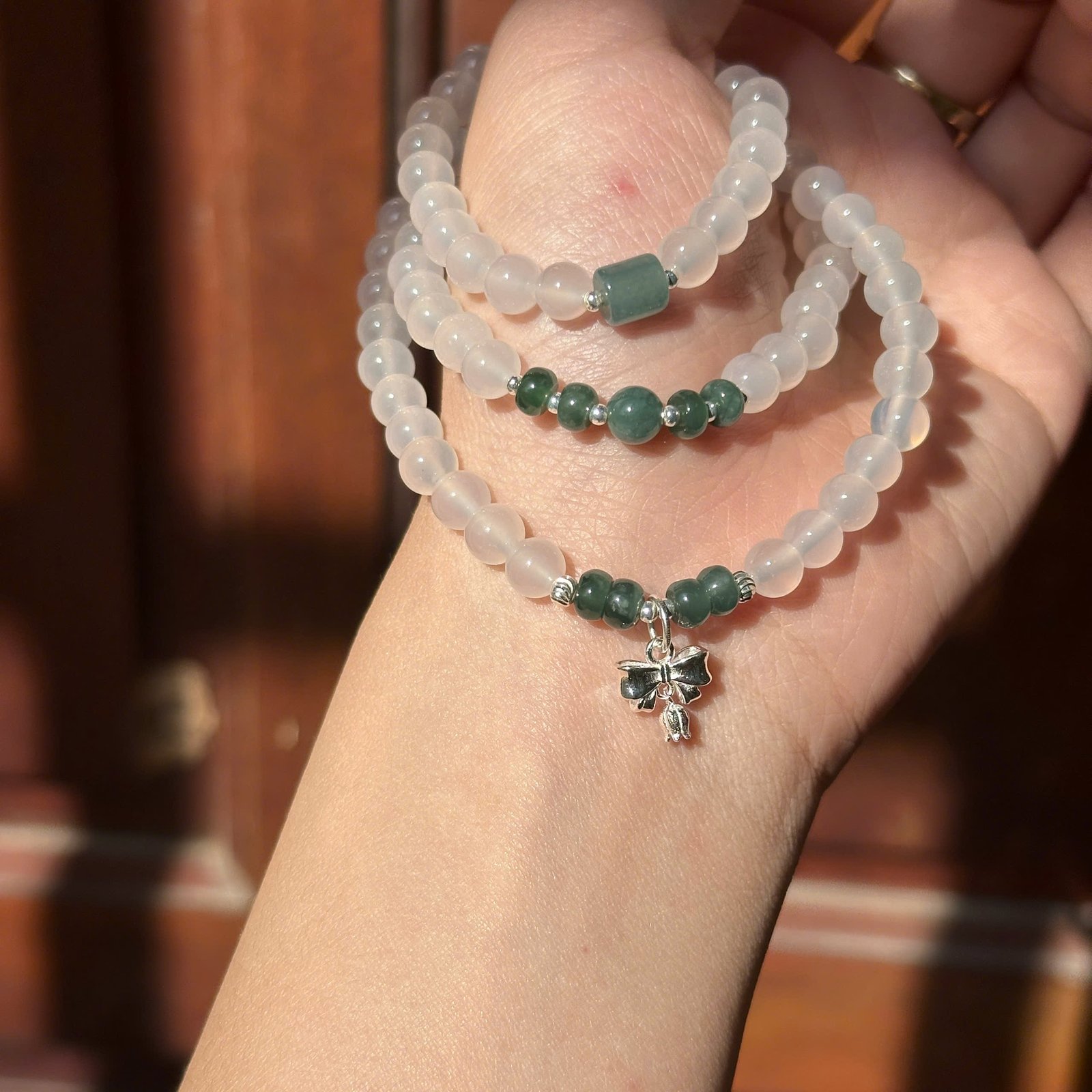 🤍 Chuỗi cuốn 3 Mã Não Trắng mix Ngọc Lam – Nhẹ nhàng & thanh năng lượng