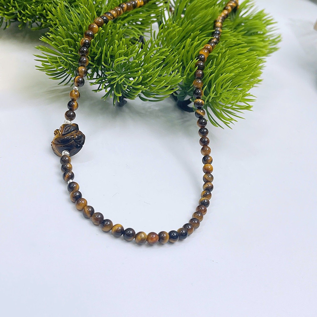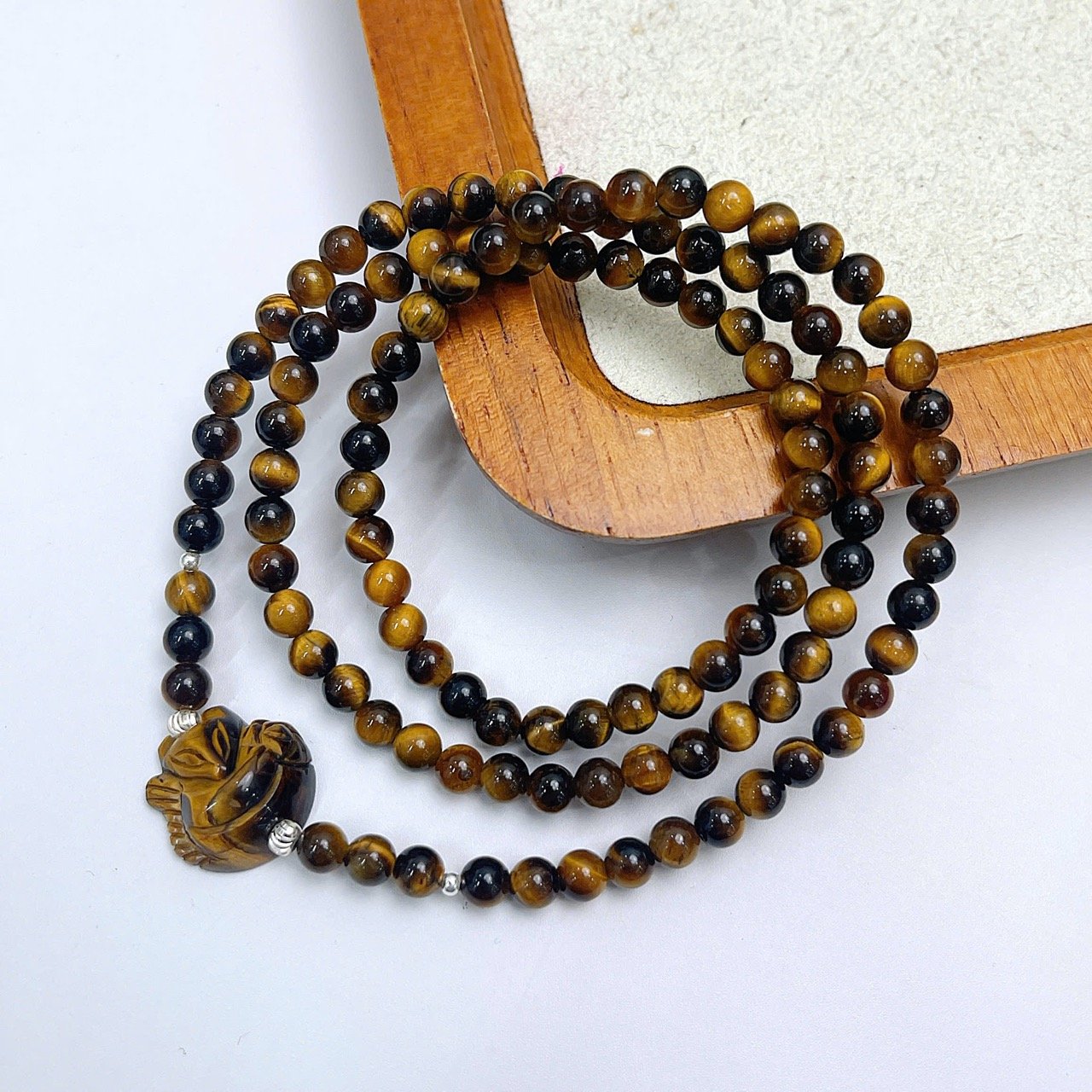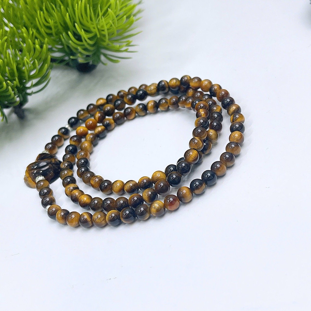 Chuỗi vòng tay quấn 3 vòng được chế tác từ đá mắt hổ tự nhiên, nổi bật với vân đá ánh kim sang trọng. Kết hợp charm hồ ly phong thủy cùng bi bạc tạo điểm nhấn tinh tế, mang lại vẻ đẹp vừa thanh lịch vừa cuốn hút.