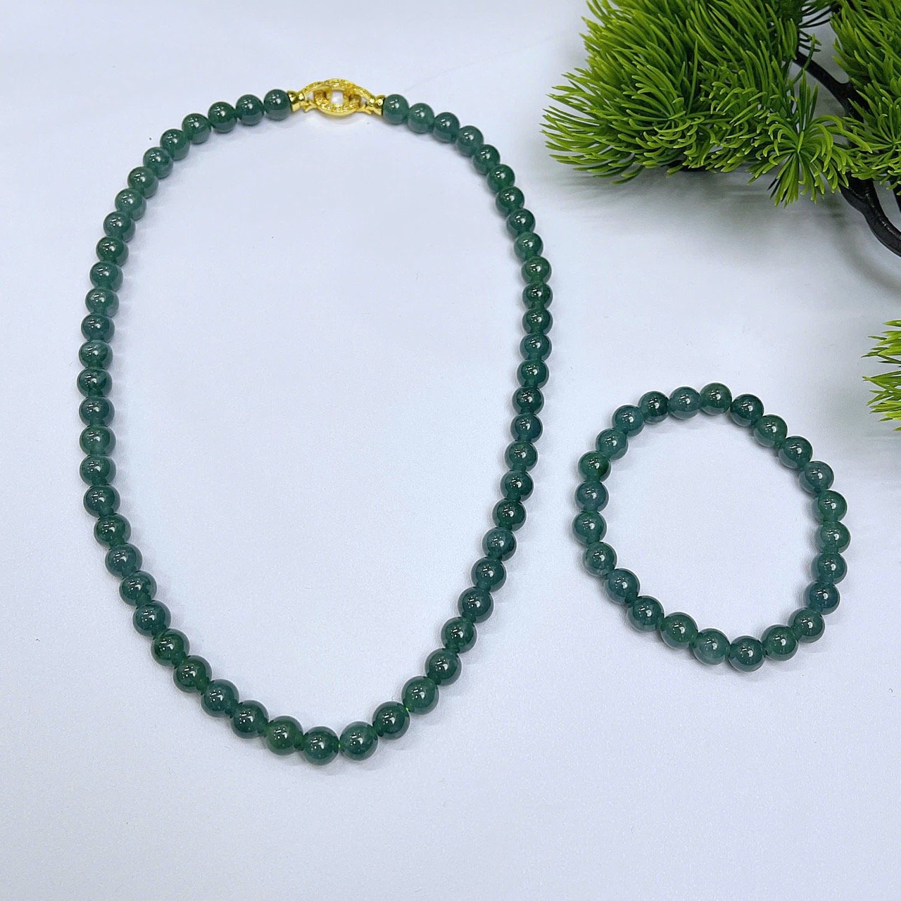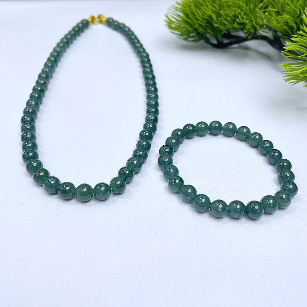 Sở hữu ngay set trang sức ngọc lam sang trọng – tone xanh dịu mắt, tinh tế và cực kỳ dễ phối đồ. Thiết kế đồng bộ vòng cổ + vòng tay giúp tổng thể nổi bật, thanh lịch và cuốn hút.