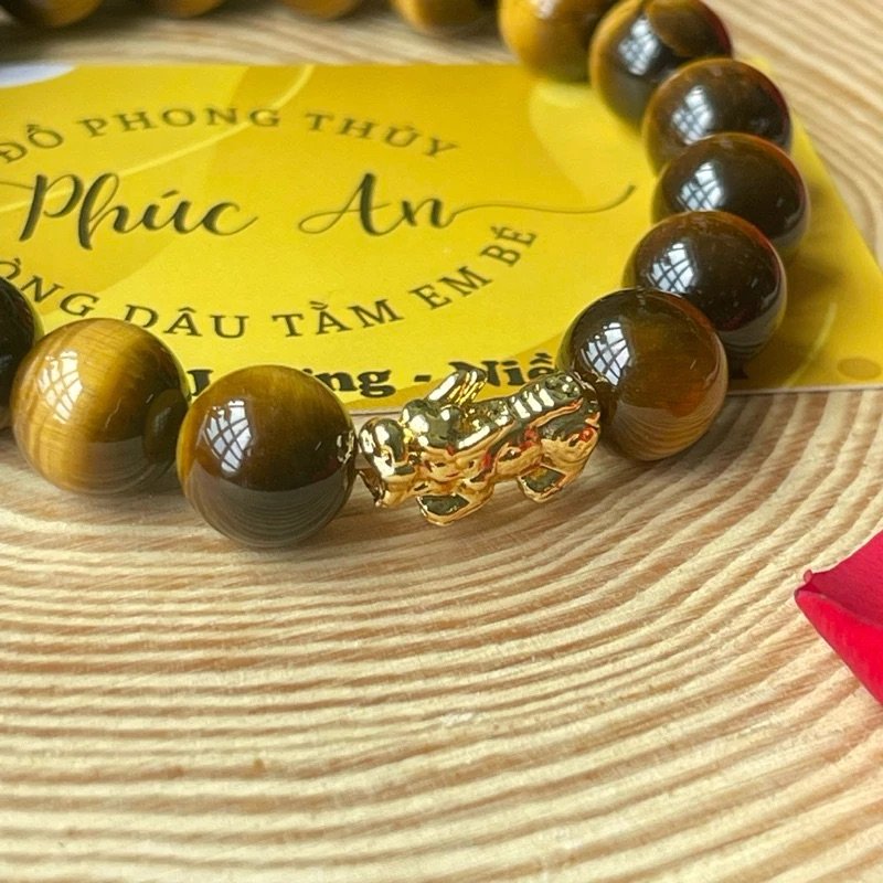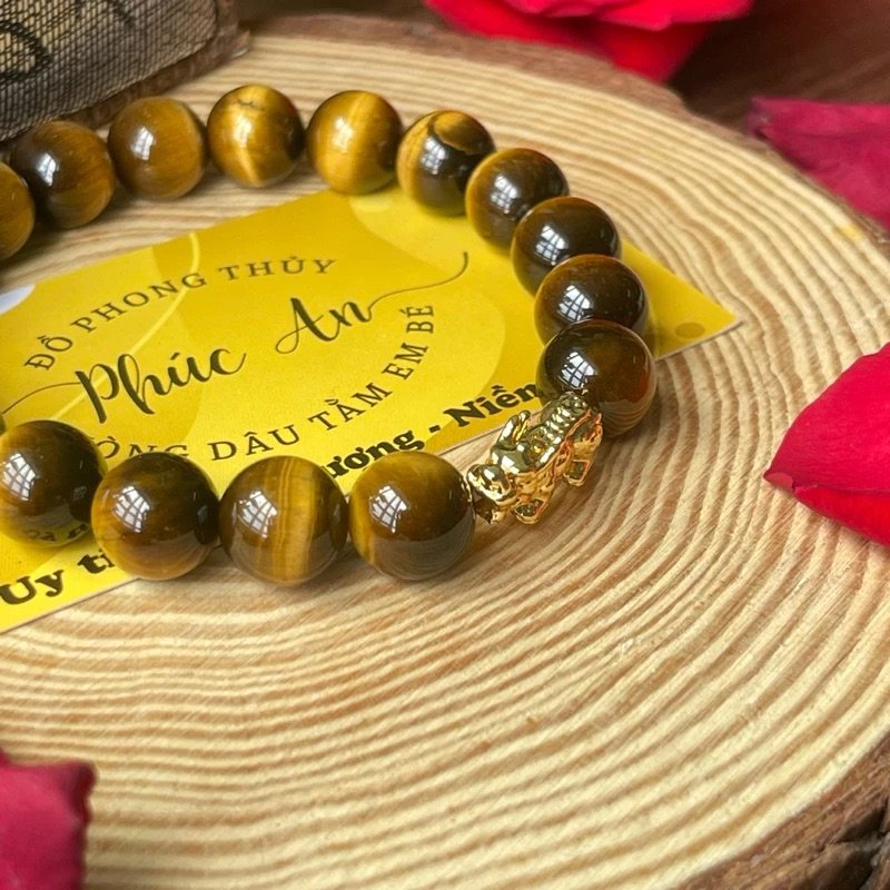 Vòng Tay Đá Mắt Hổ Vàng Nâu Mix Tỳ Hưu – Chiêu Tài, Hộ Mệnh, Tăng Bản Lĩnh 💰