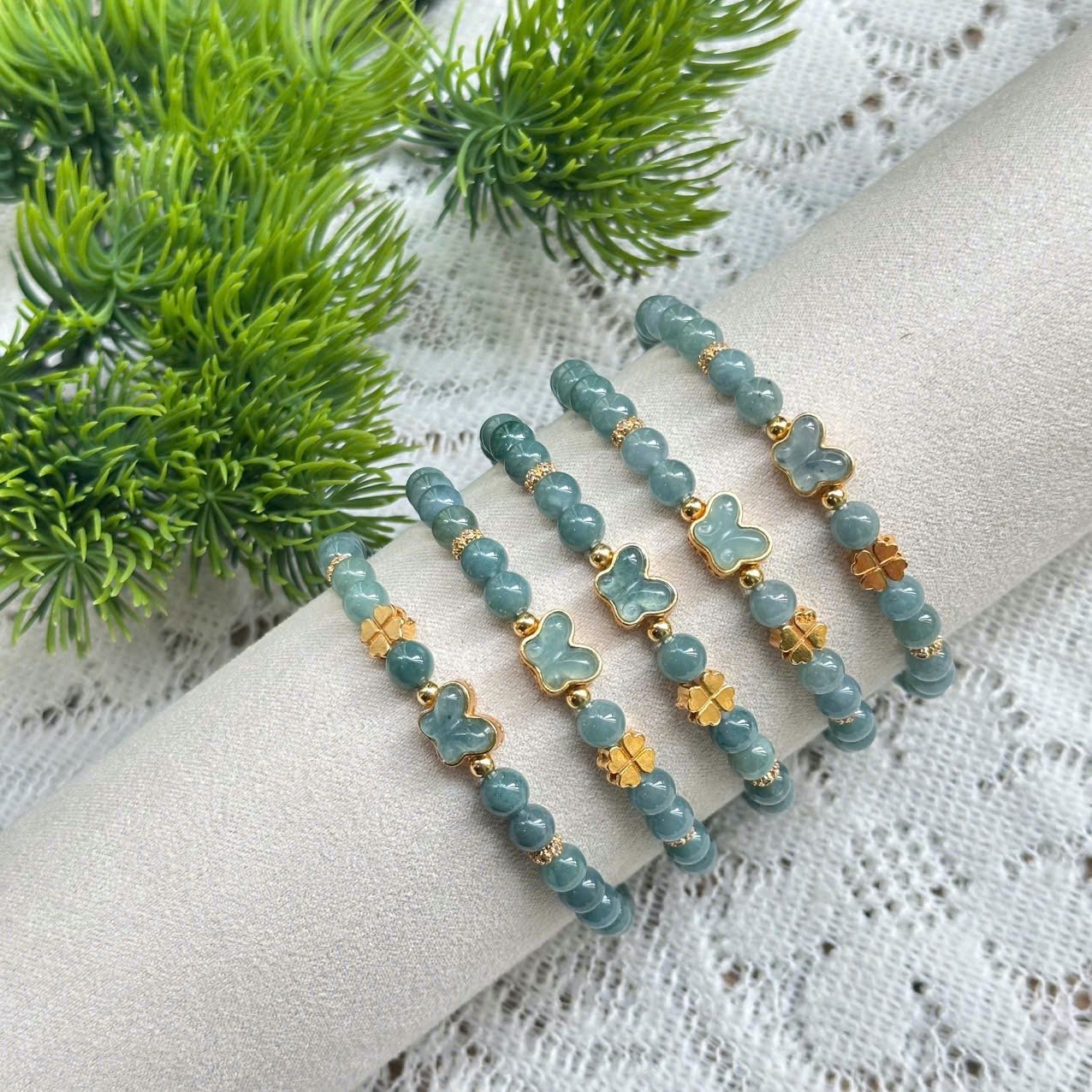 Vòng Tay Lam Ngọc Charm Hồ Điệp Và Cỏ 4 Lá Bạc S925 – Dịu Dàng, May Mắn, Thu Hút Tài Lộc