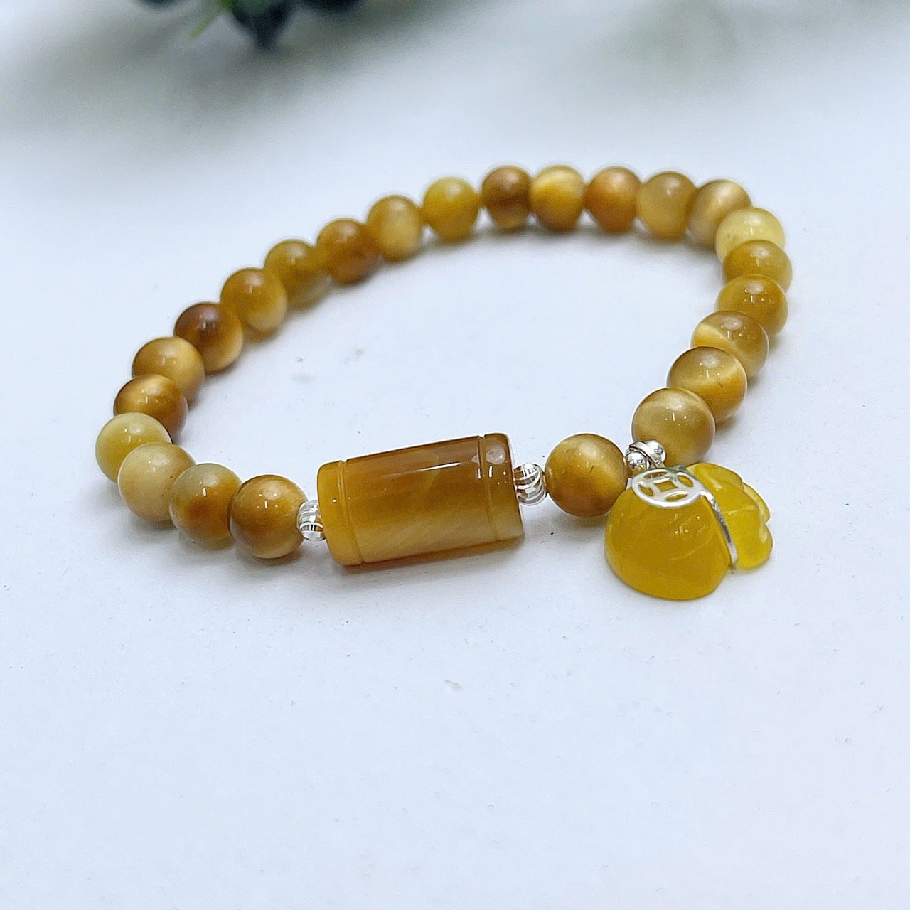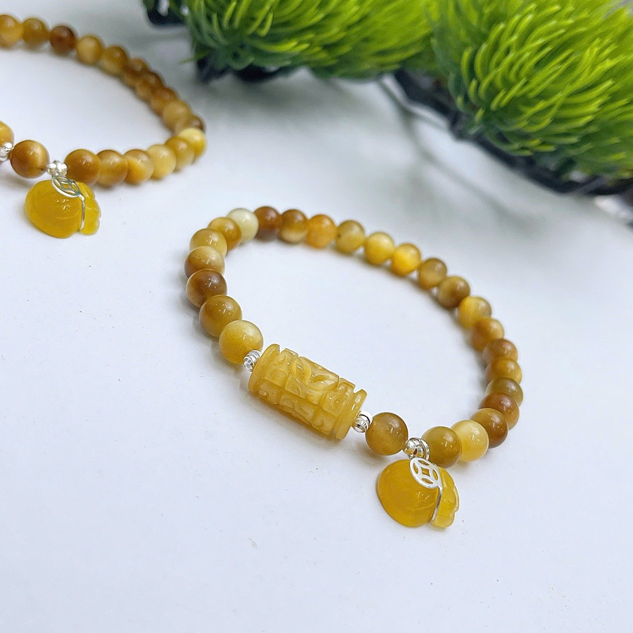 Vòng tay đá Mắt Hổ Vàng Tâm mang sắc vàng ấm sang trọng, kết hợp charm bạc túi tiền tinh xảo, không chỉ là phụ kiện thời trang mà còn là vật phẩm phong thủy giúp thu hút tài lộc, tăng sự tự tin và mang lại may mắn trong công việc lẫn cuộc sống. ✨