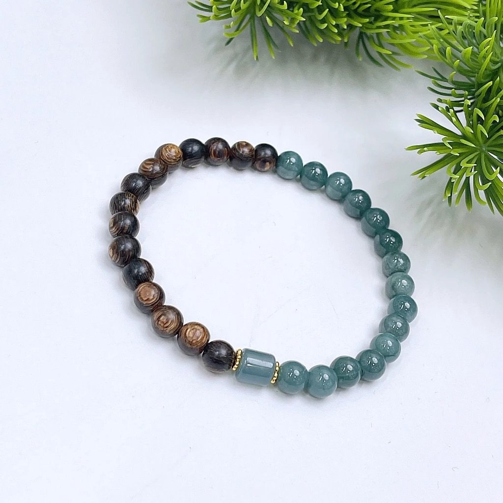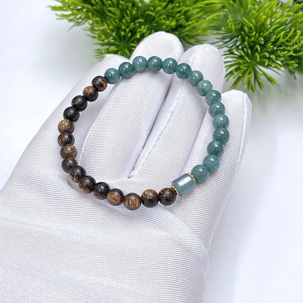 Vòng Trầm Sánh Mix Ngọc Lam 6mm – Thanh Lịch, Bình An, May Mắn ✨