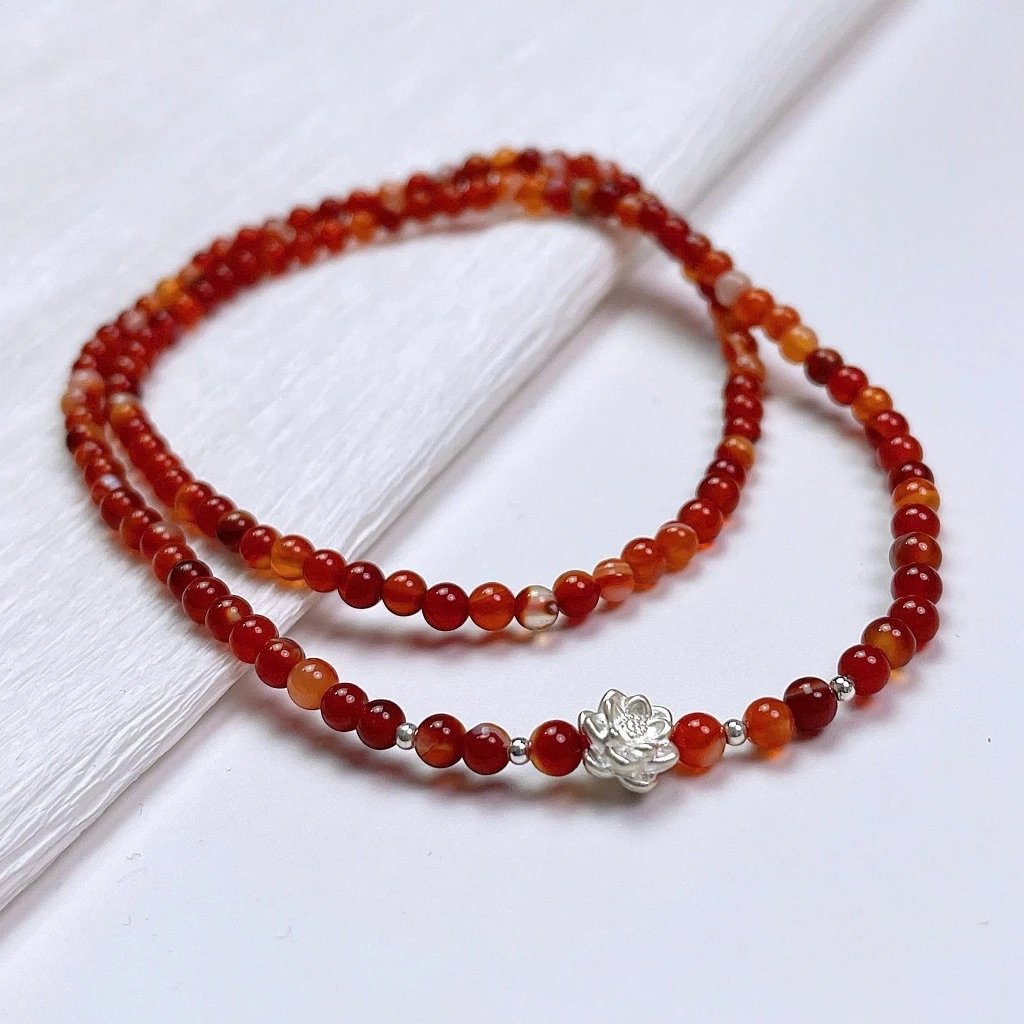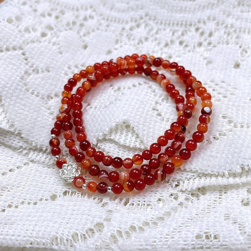 Chuỗi Quấn 3 Vòng Đá Mã Não Đỏ Tự Nhiên 4mm Mix Charm Bạc