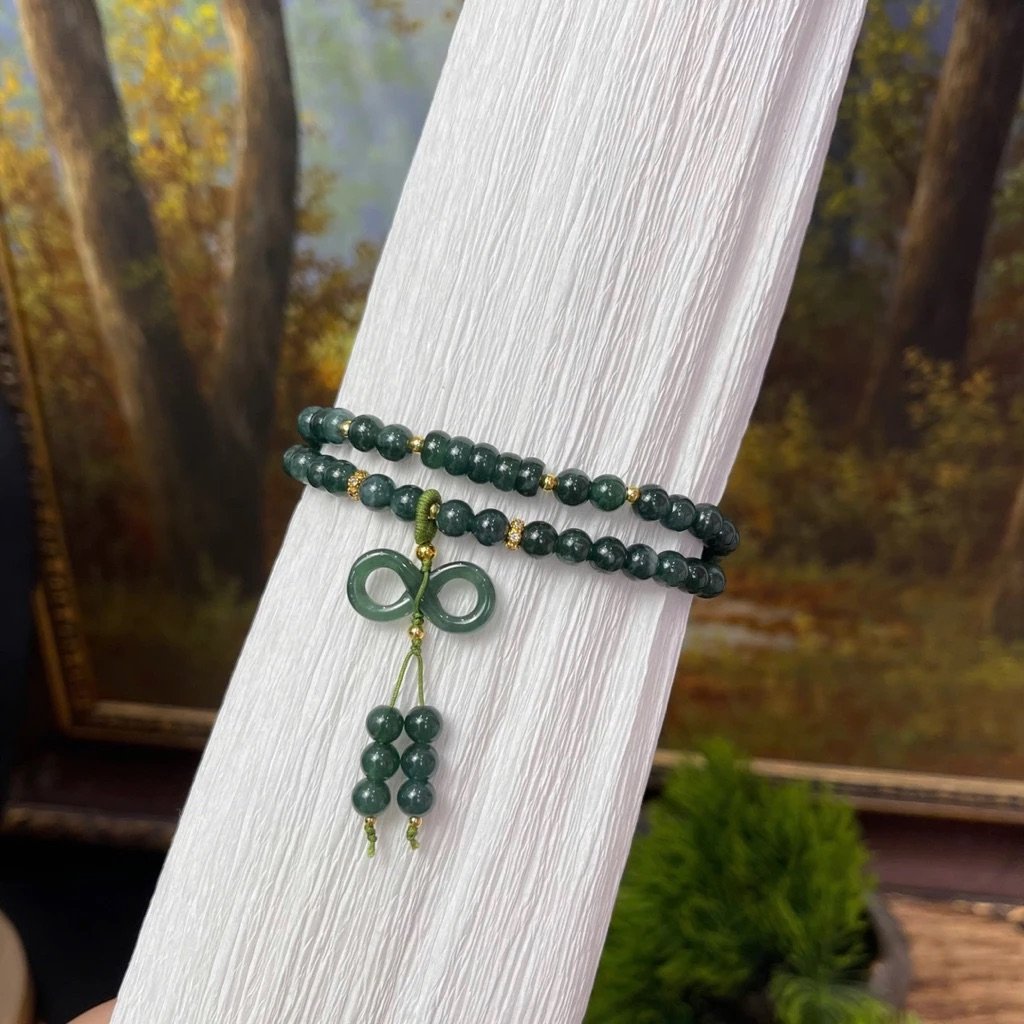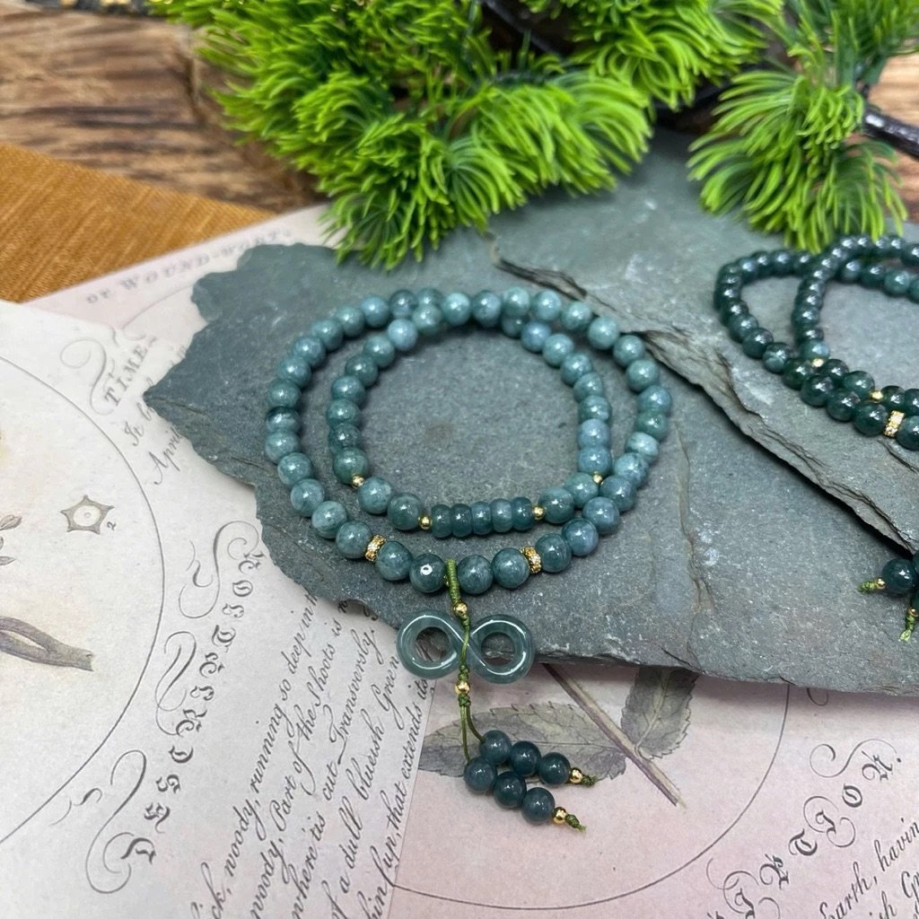 ✨ Mẫu vòng quấn 2 nổi bật với sắc Ngọc Lam thanh lịch, kết hợp charm Như Ý & Ngũ Điếu mang ý nghĩa cát tường – vừa là trang sức thời trang, vừa là vật phẩm phong thuỷ thu hút vận may.