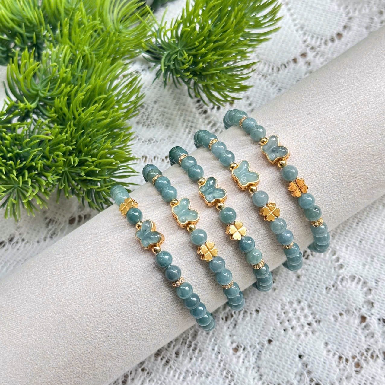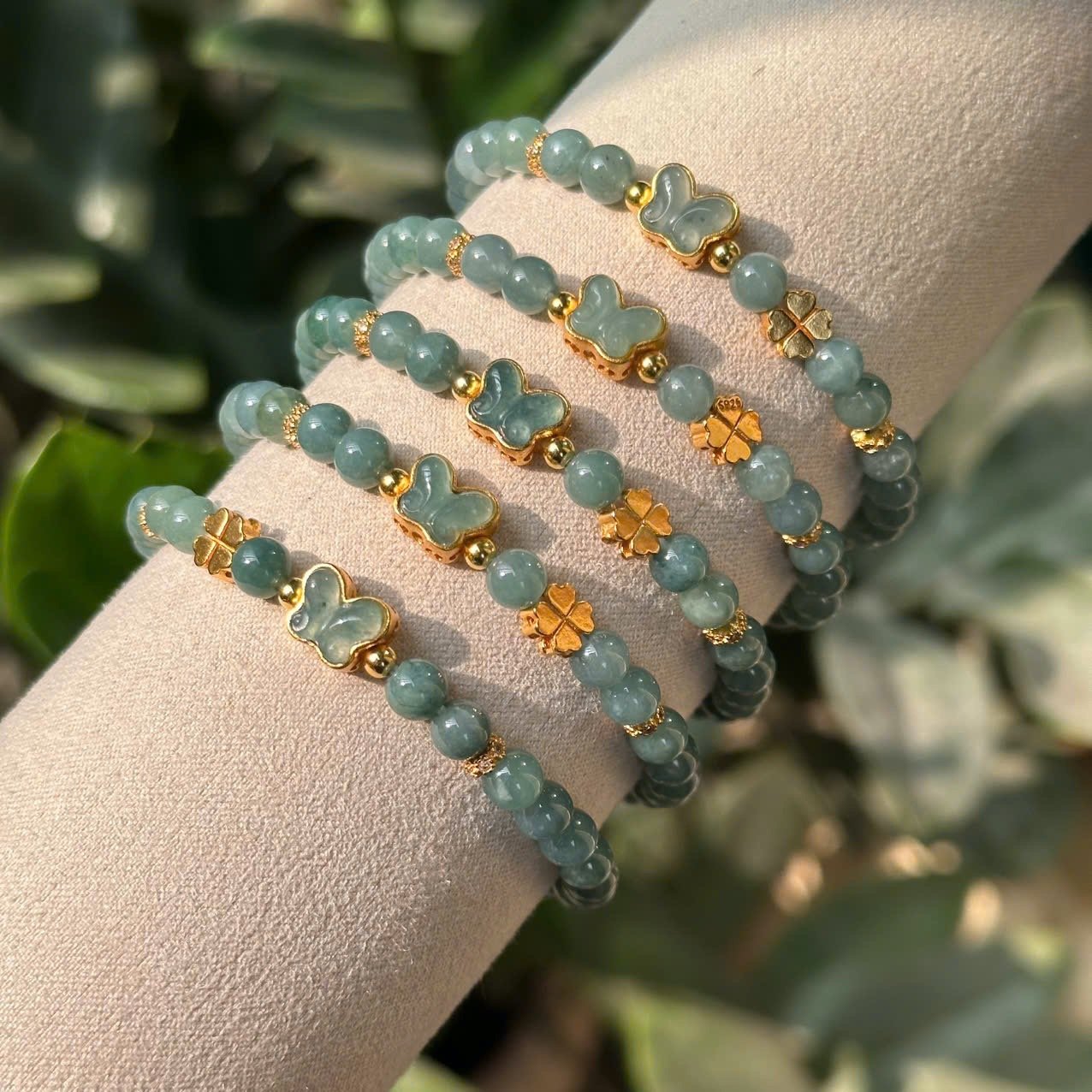 Vòng Tay Lam Ngọc Charm Hồ Điệp Và Cỏ 4 Lá Bạc S925 – Dịu Dàng, May Mắn, Thu Hút Tài Lộc