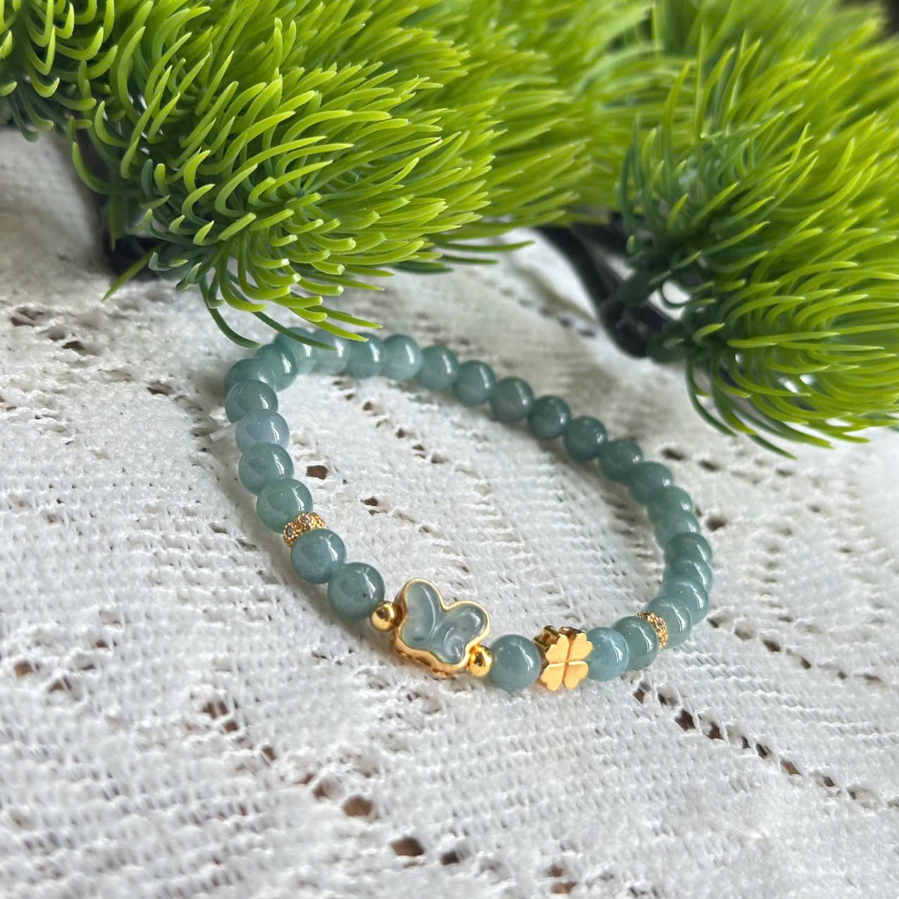 Thiết kế tinh tế từ lam ngọc tự nhiên phối cùng charm hồ điệp và cỏ 4 lá bạc S925, mang vẻ đẹp nhẹ nhàng nhưng cực kỳ sang. Sắc xanh dịu mát giúp tôn da, dễ phối đồ – đeo đi làm hay đi chơi đều nổi bật.