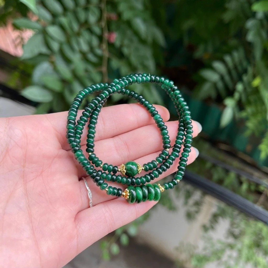 Vòng tay mã não xanh dạng bánh xe quấn 3 vòng là mẫu trang sức phong thủy nổi bật với sắc xanh trầm sang trọng, mang lại cảm giác thanh lịch và tinh tế. Thiết kế hạt bánh xe độc đáo kết hợp cùng ngũ điếu sơn thủy và charm titan cao cấp giúp chiếc vòng trở nên khác biệt, vừa thời trang vừa giàu ý nghĩa phong thủy.