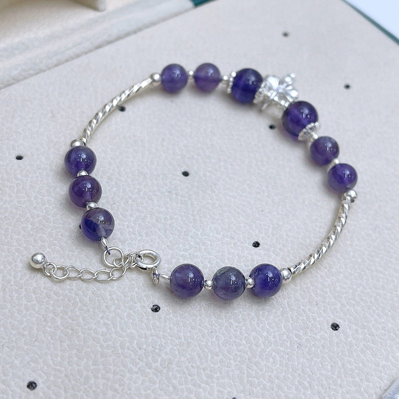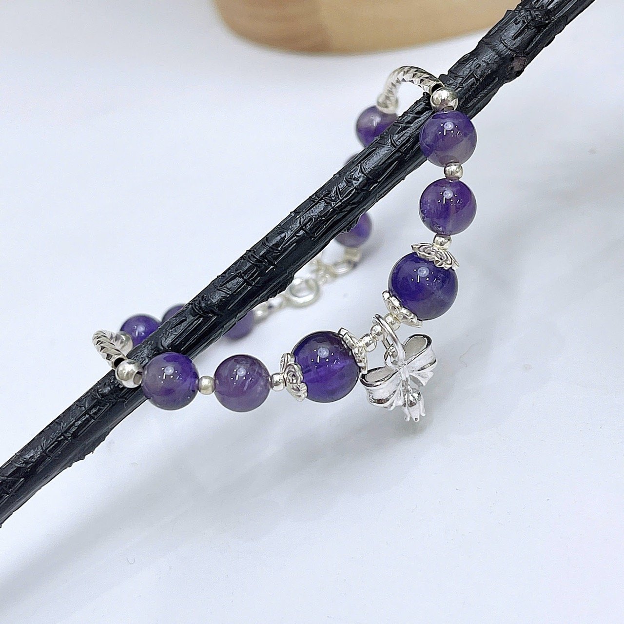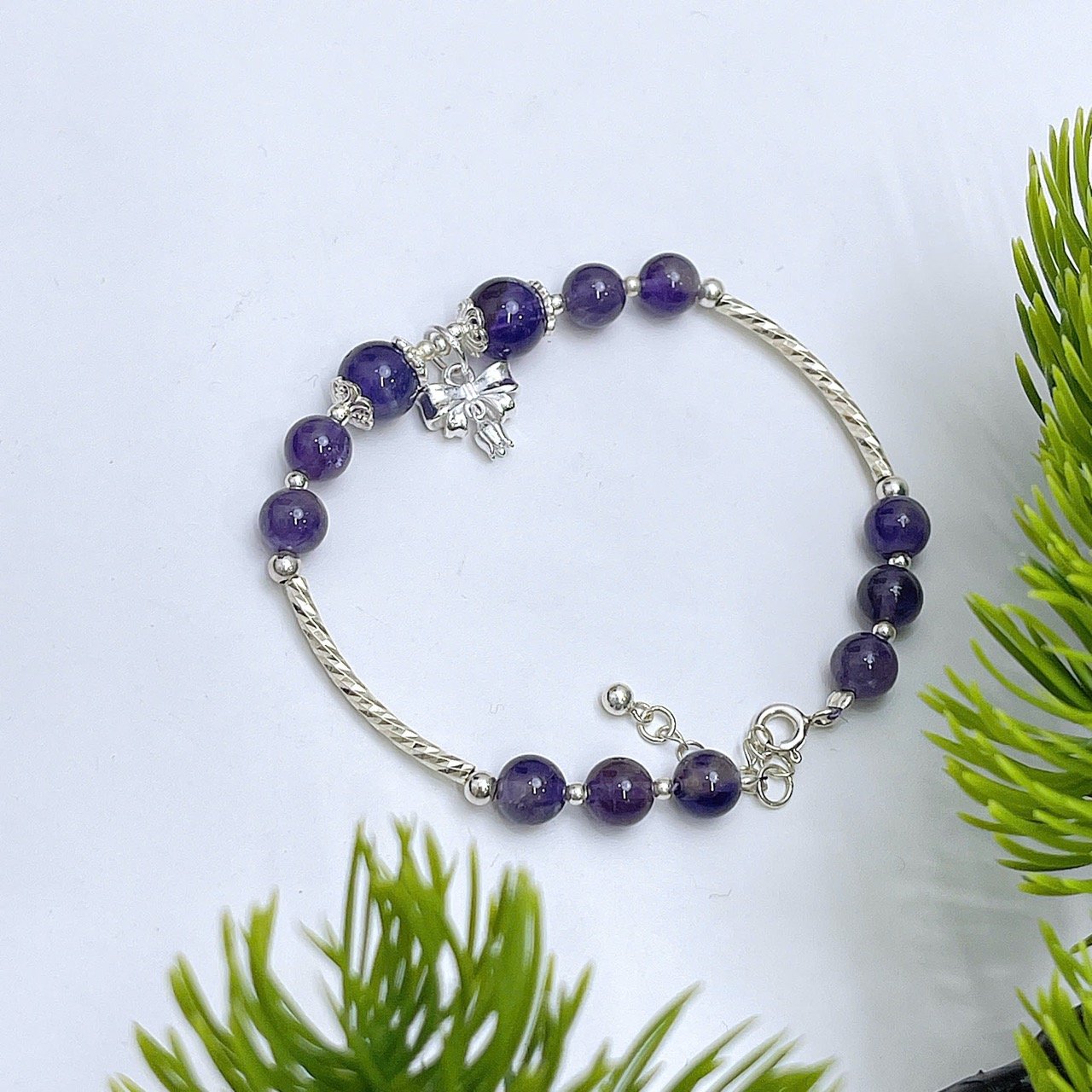 Sở hữu sắc tím dịu dàng của thạch anh tím tự nhiên, chiếc vòng mang vẻ đẹp nhẹ nhàng, sang trọng và đầy cuốn hút. Điểm nhấn là charm bạc tinh xảo, tạo nên tổng thể thanh lịch, phù hợp đeo hằng ngày hoặc làm quà tặng ý nghĩa.