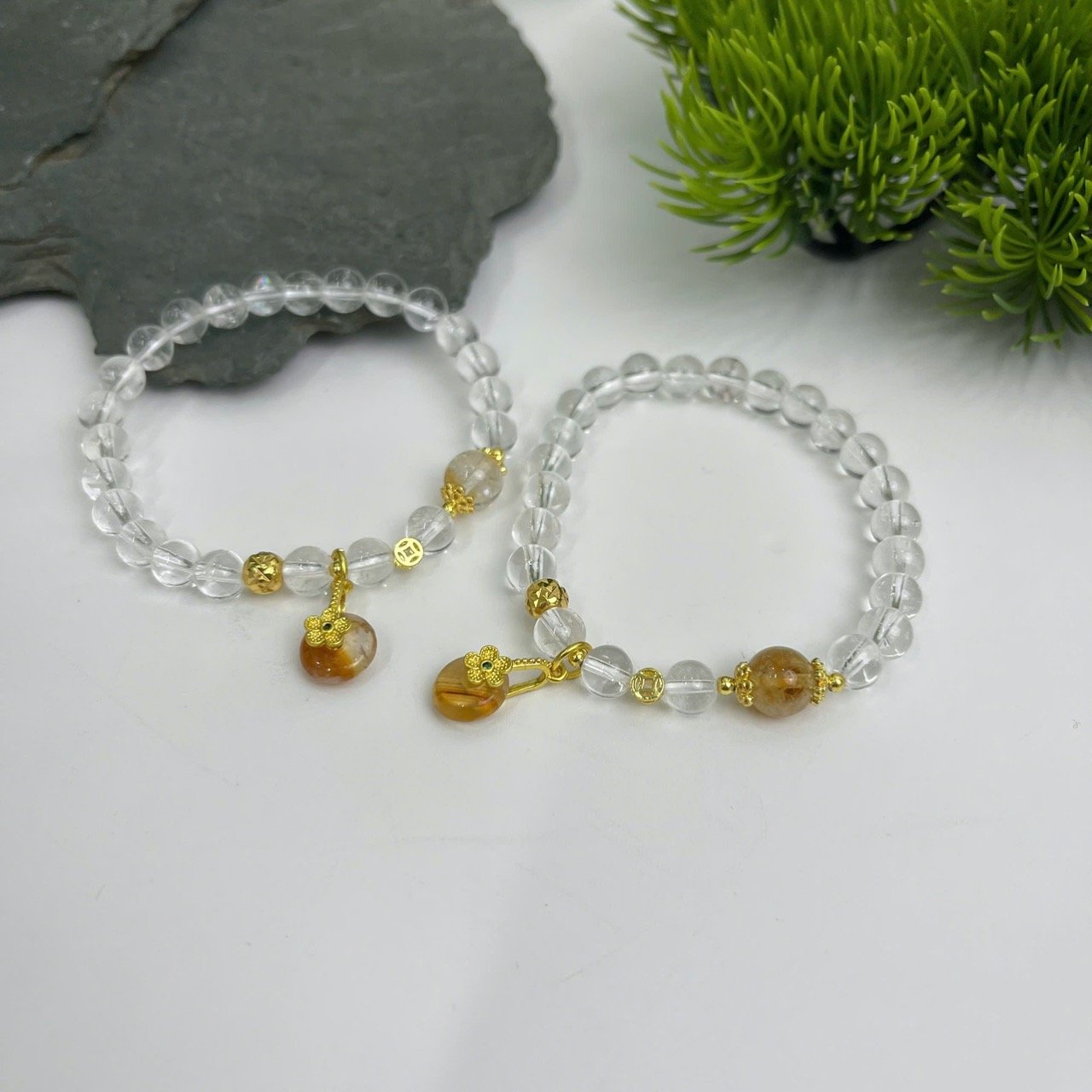 Vòng Tay Thạch Anh Trắng Mix Đồng Điếu Charm Titan Cao Cấp – Thanh Lọc Năng Lượng, Hút Tài Lộc