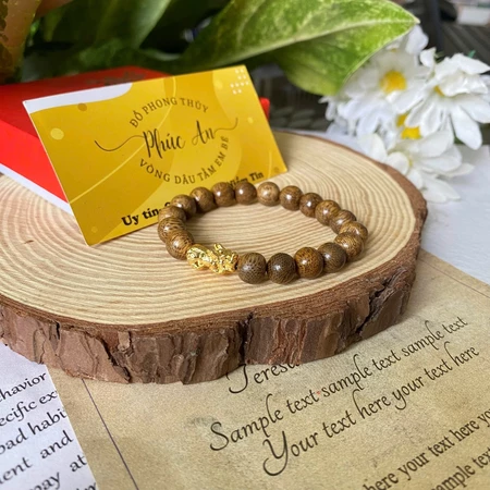 - Hạt trầm tự nhiên kết hợp với Tỳ Hưu vàng tạo nên vẻ đẹp cổ điển và sang trọng.