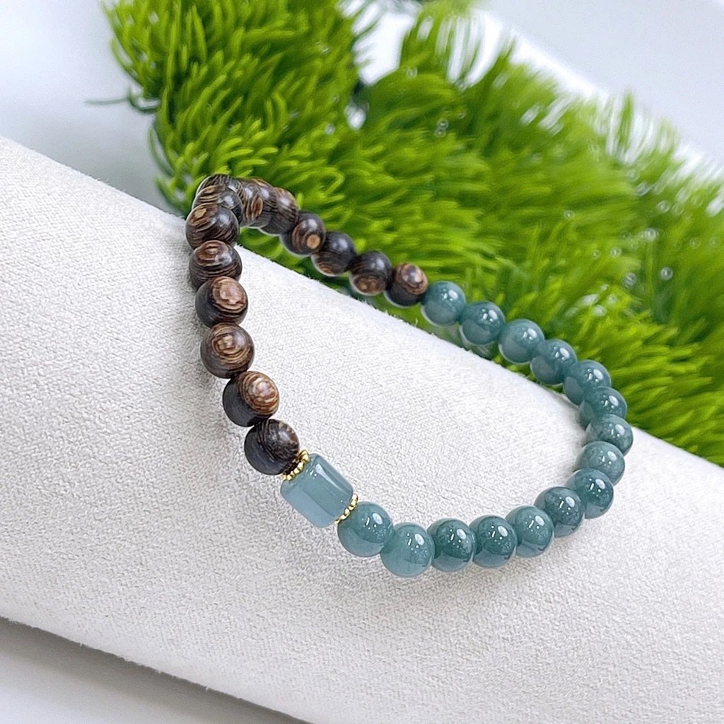 Vòng Trầm Sánh Mix Ngọc Lam 6mm – Thanh Lịch, Bình An, May Mắn ✨